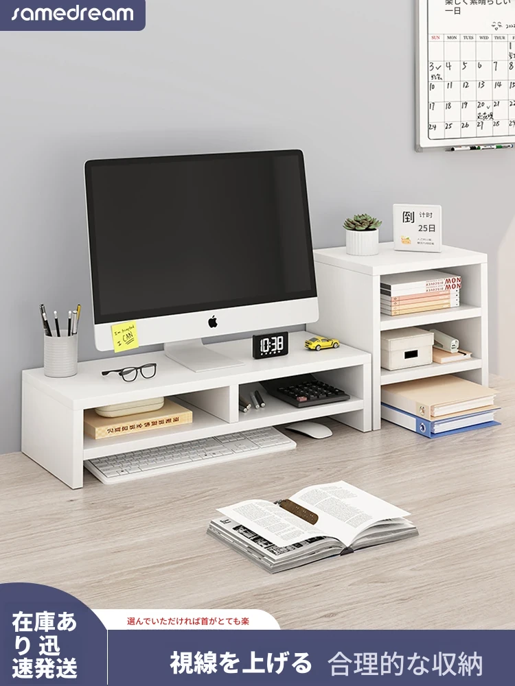 三夢デスクトップコンピュータースタンド - モニター昇降台とデスク収納に最適なノートパソコンホルダー!オフィスや作業スペースをスッキリ整理し、快適な作業環境を実現します。