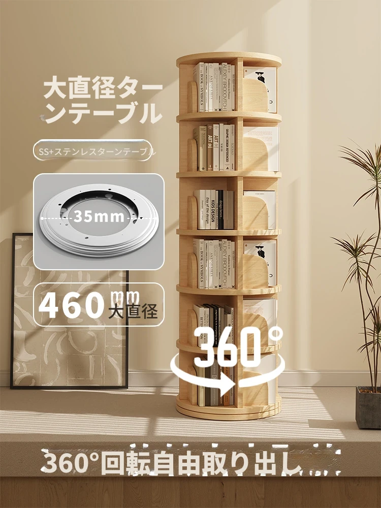 全実木製回転書棚 おしゃれなフロアスタンド収納 リビングにぴったり!子供向け絵本もスッキリ収納 シンプル&機能的なデザインで、壁際にぴったりフィット!