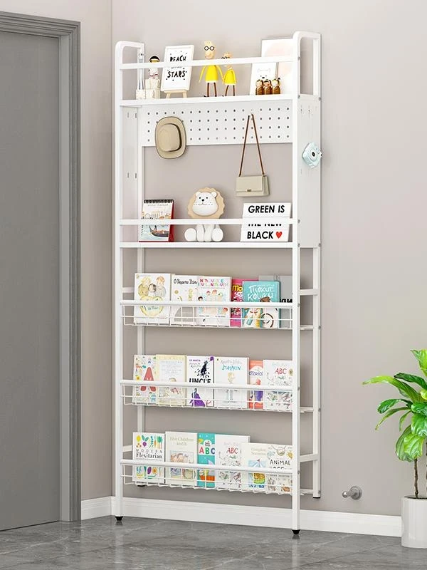 ドア裏収納ラック 超薄型穴あきボード アイアン製本棚 一体型ウォールマウント 極狭スペース対応 絵本収納 家庭用整理棚