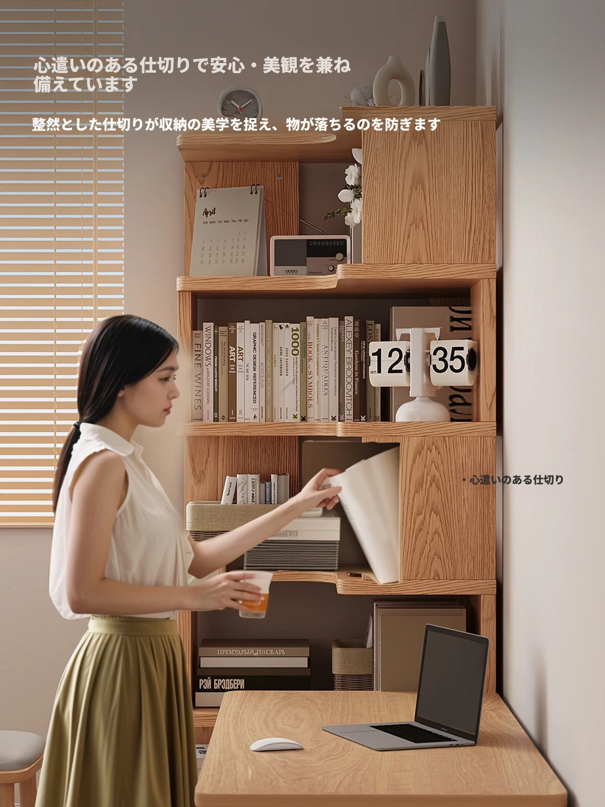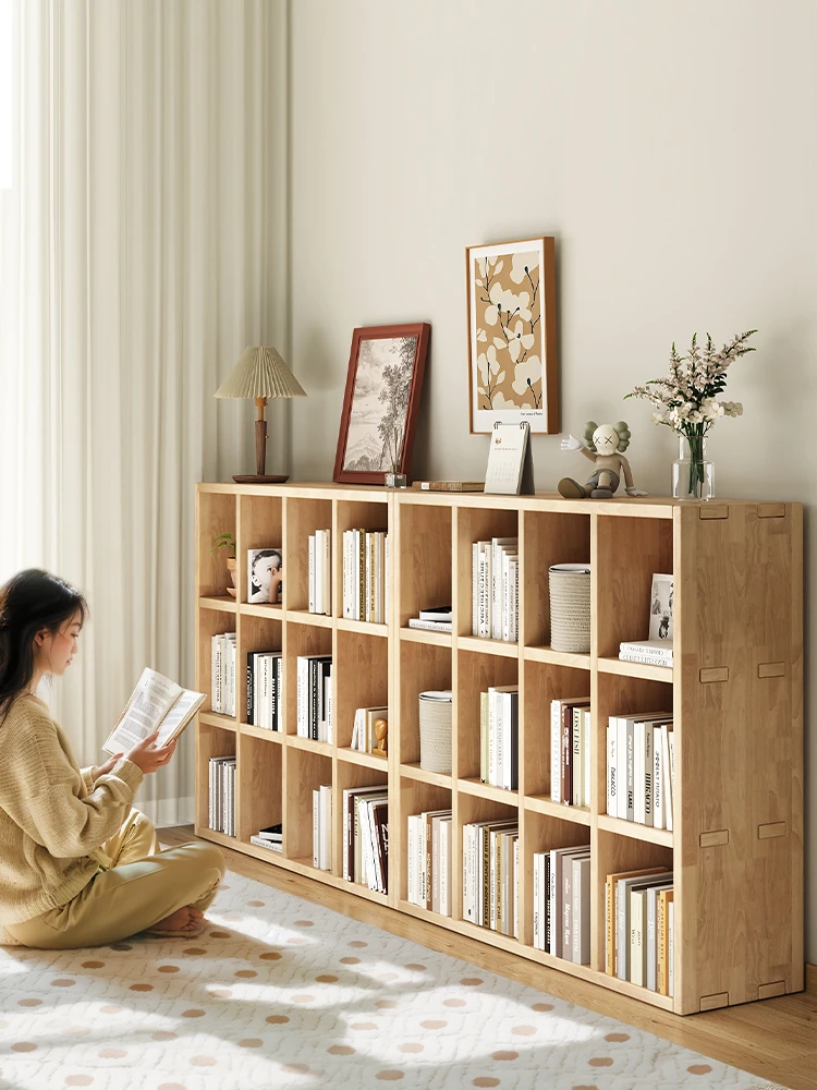 三夢の無垢材書棚 - シンプルでスタイリッシュなフロアスタンド収納ラック。リビングや子供部屋に最適な格子デザインで、使いやすさと美しさを兼ね備えた収納家具です!