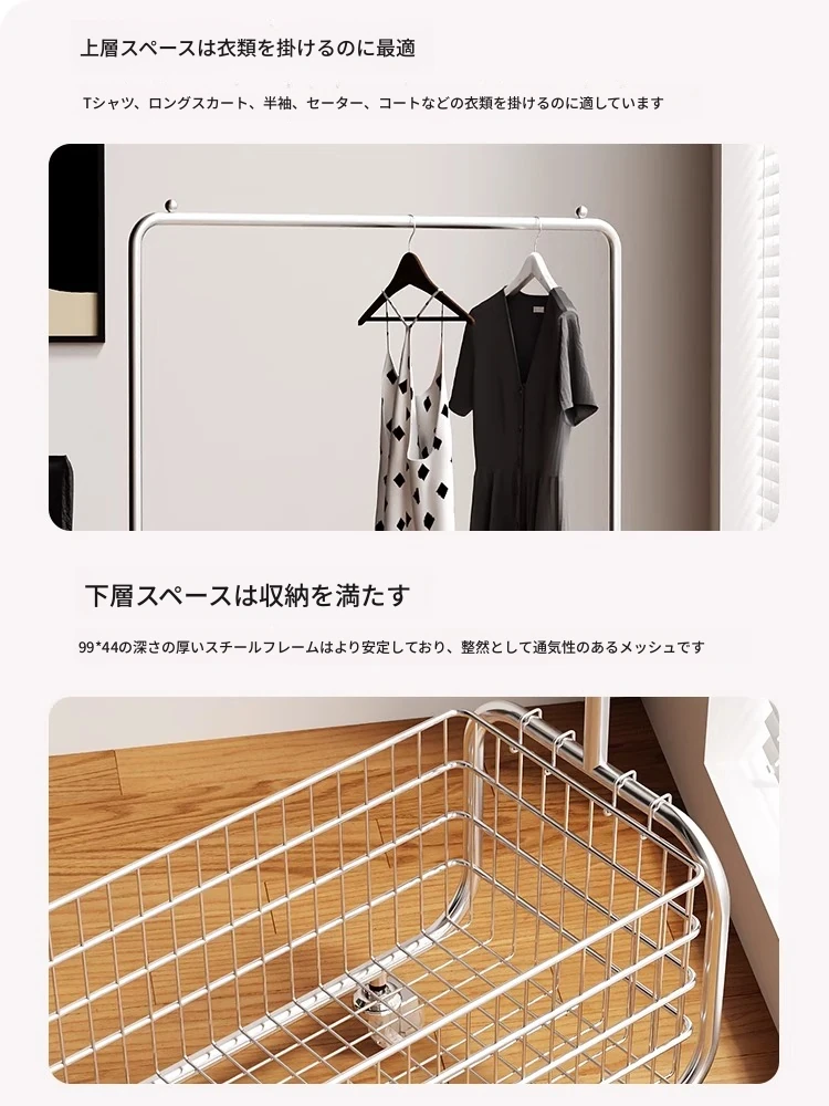 スリードリーム軽奢スタイルのコートハンガー - 寝室にぴったりなフロア型衣類ラック。移動可能で、どんな部屋にもフィット。おしゃれに衣服を整理して、空間を美しく演出します!