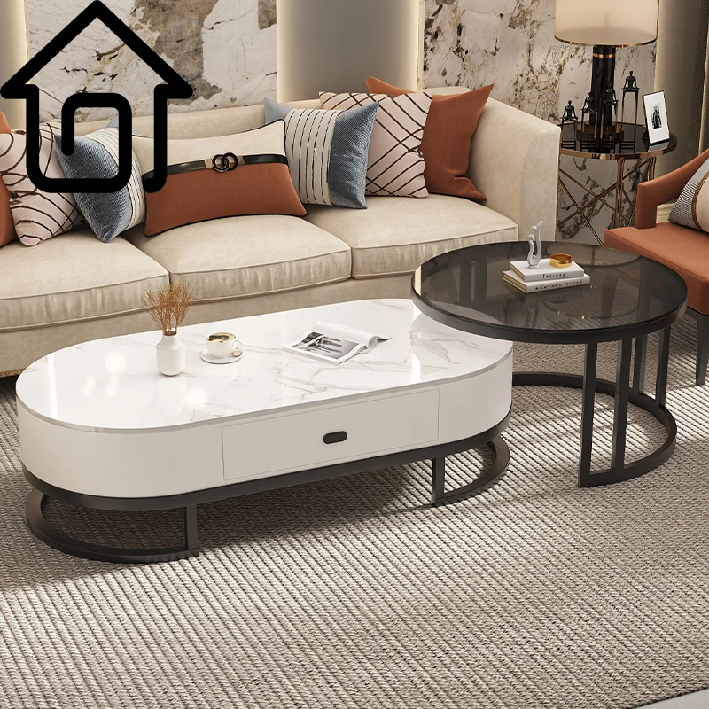 2024 New Modern Minimalist Oval Coffee Table for Living Room - Stylish and Luxurious Lightweight Design, Perfect for Small Spaces, Ideal for Home Use