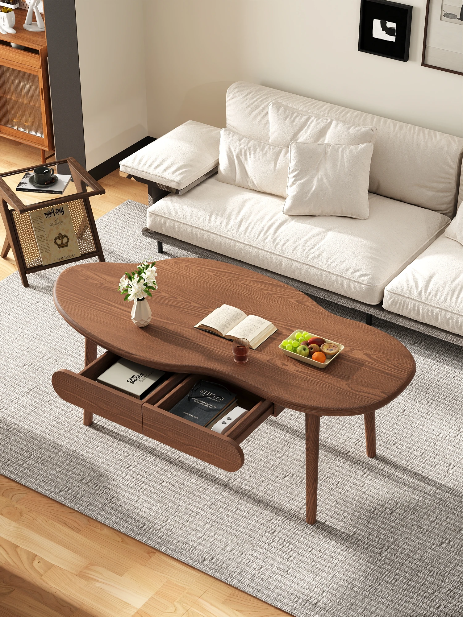 2025 New Luxury Minimalist Solid Wood Coffee Table for Living Room, Small Apartment, and Balcony - Stylish and Elegant Design for Cozy Spaces