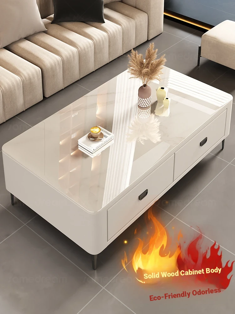 2025 New Luxury Solid Wood Rock Board Coffee Table for Small Living Rooms - Modern TV Cabinet with Elegant Style for Home Use