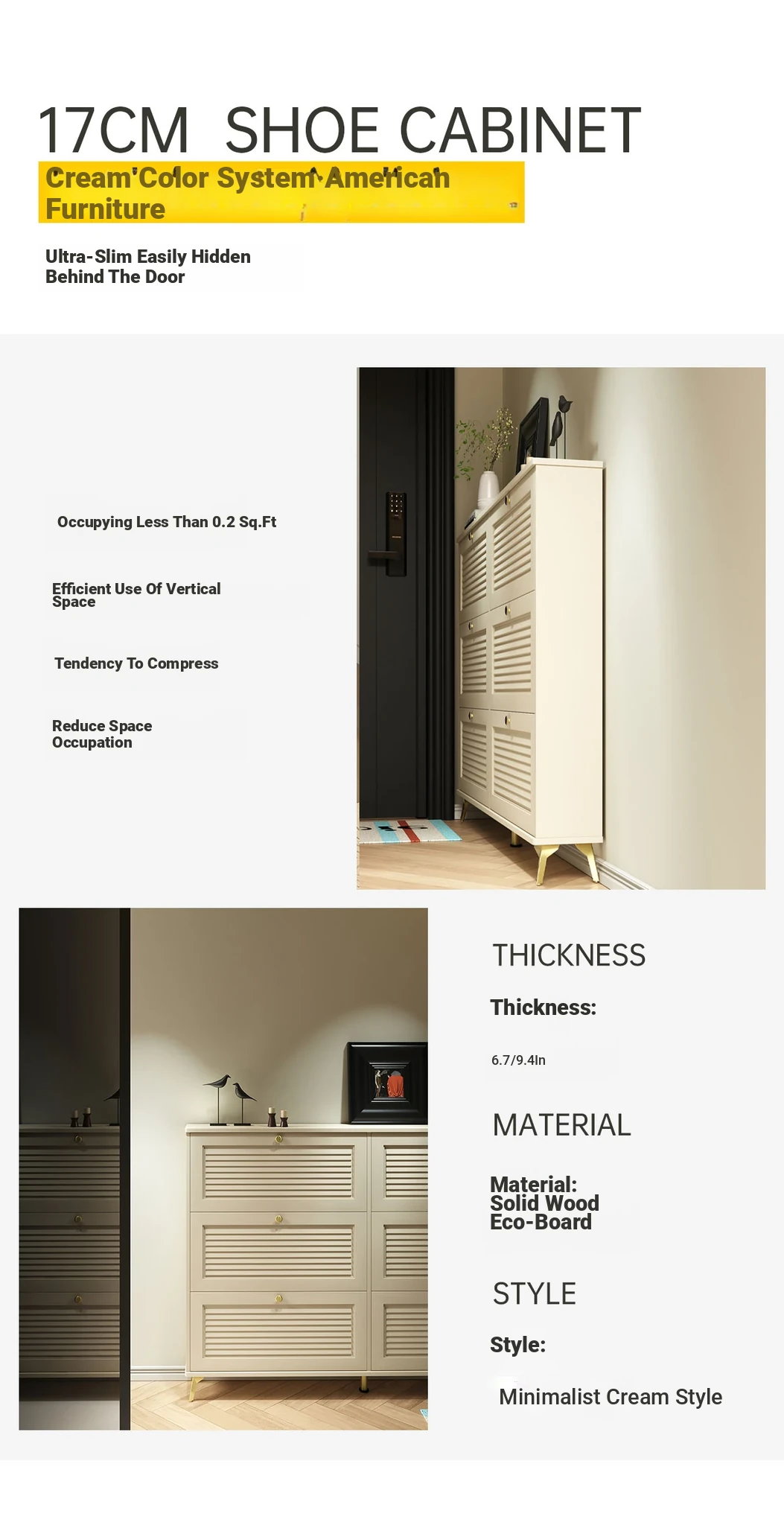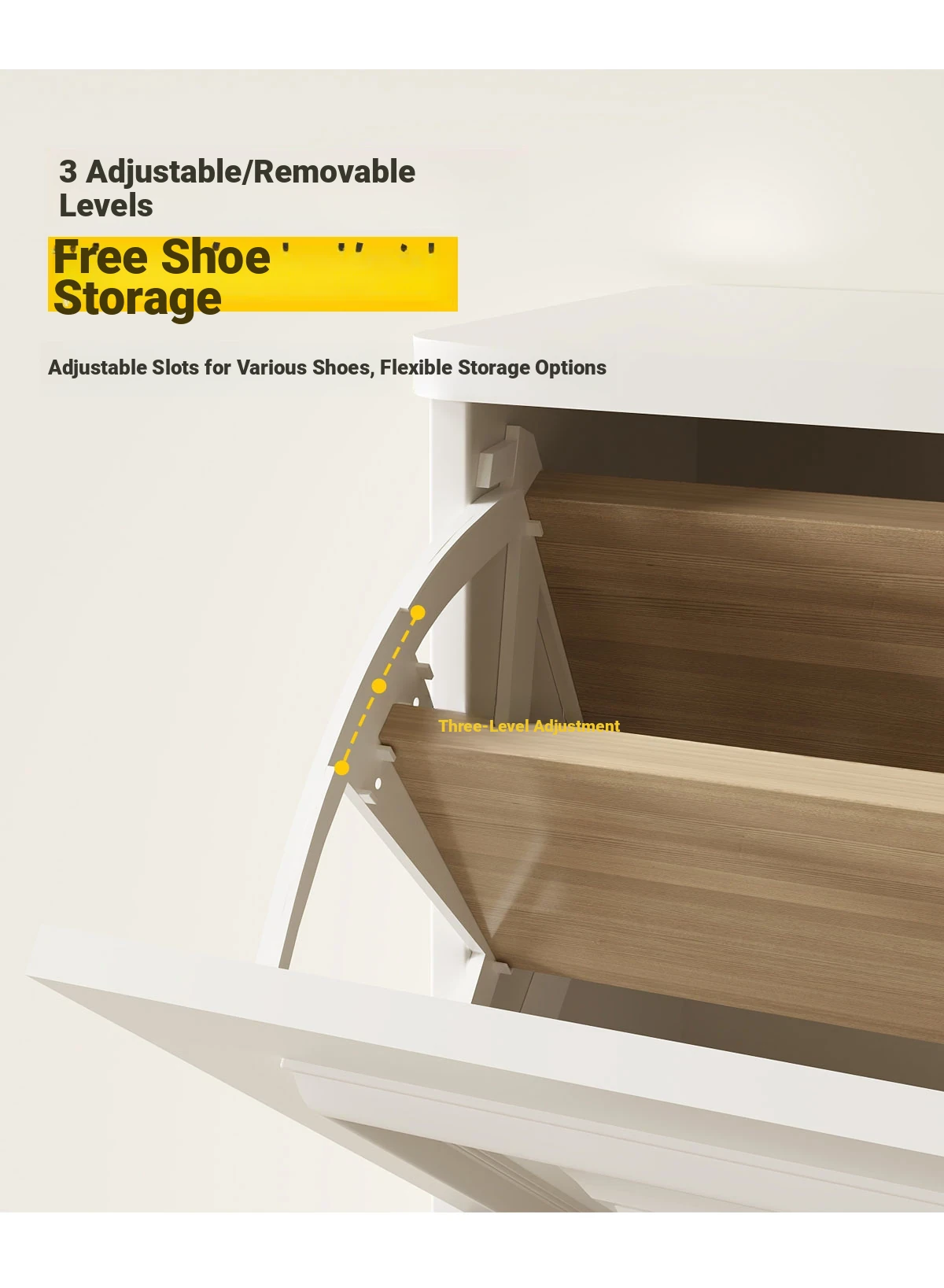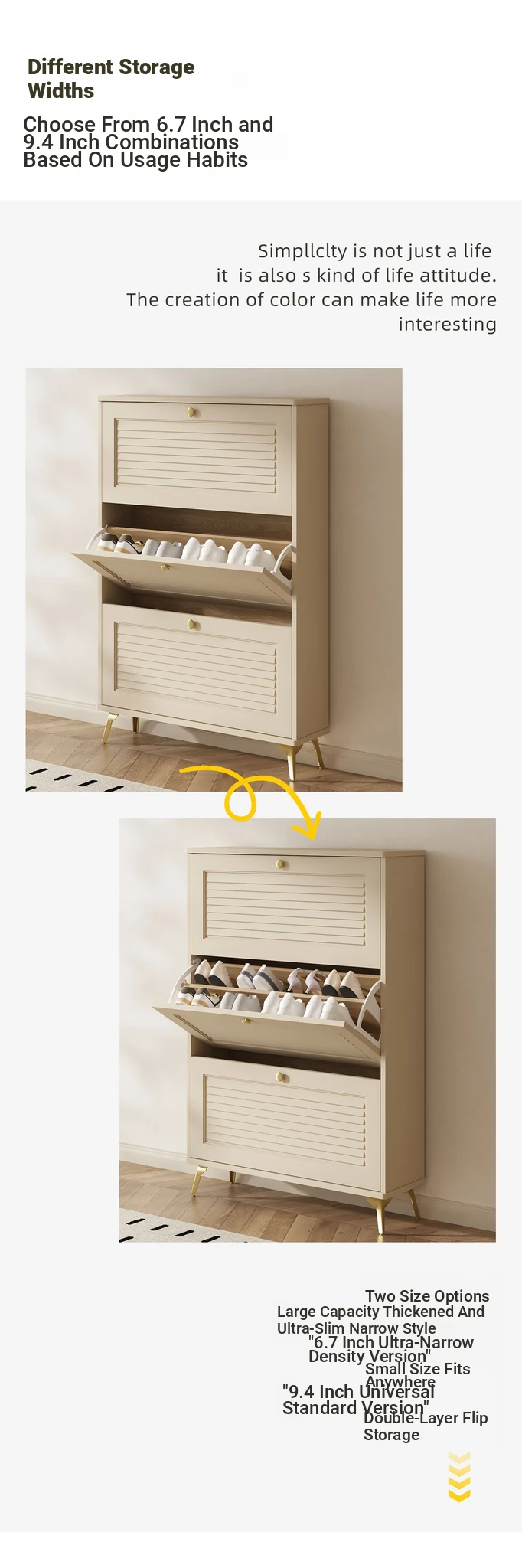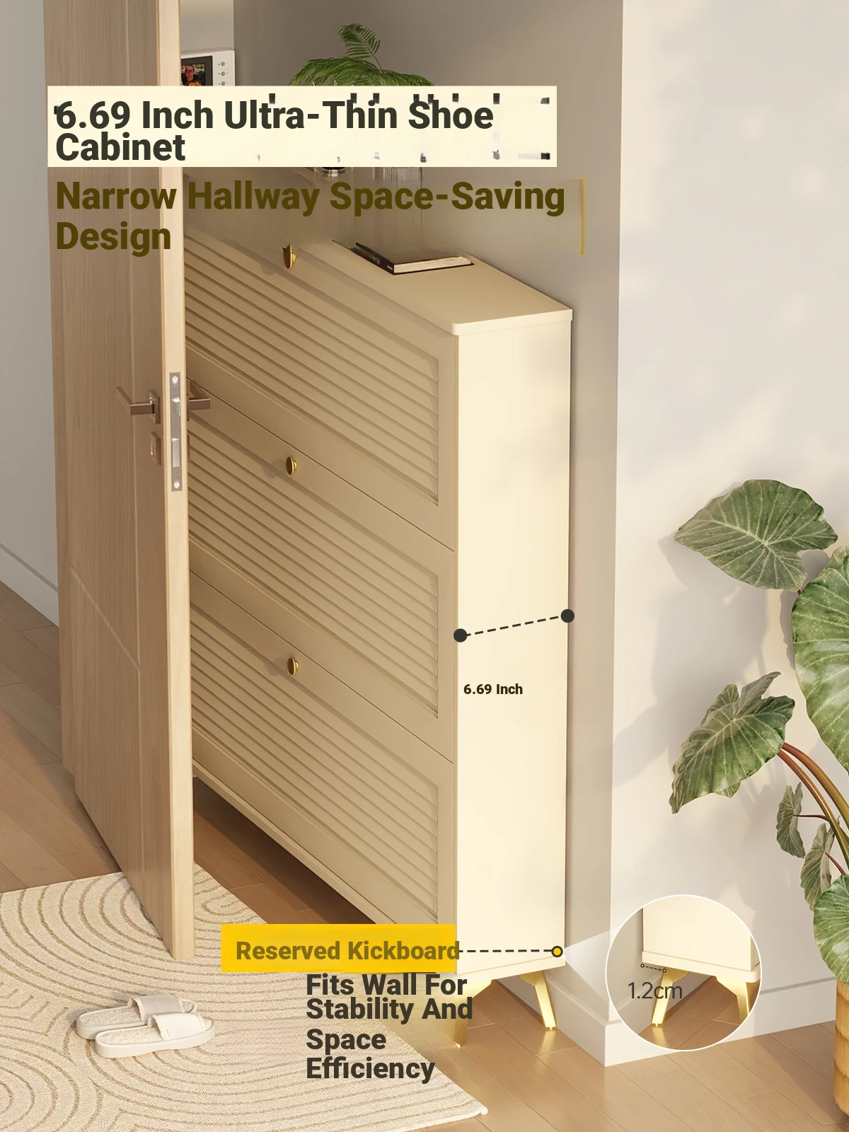 "2025 New Arrival: Slim Wooden Shoe Cabinet in Cream Finish – Perfect for Small Spaces & Entryways, Wall-Mounted Design for Easy Access"