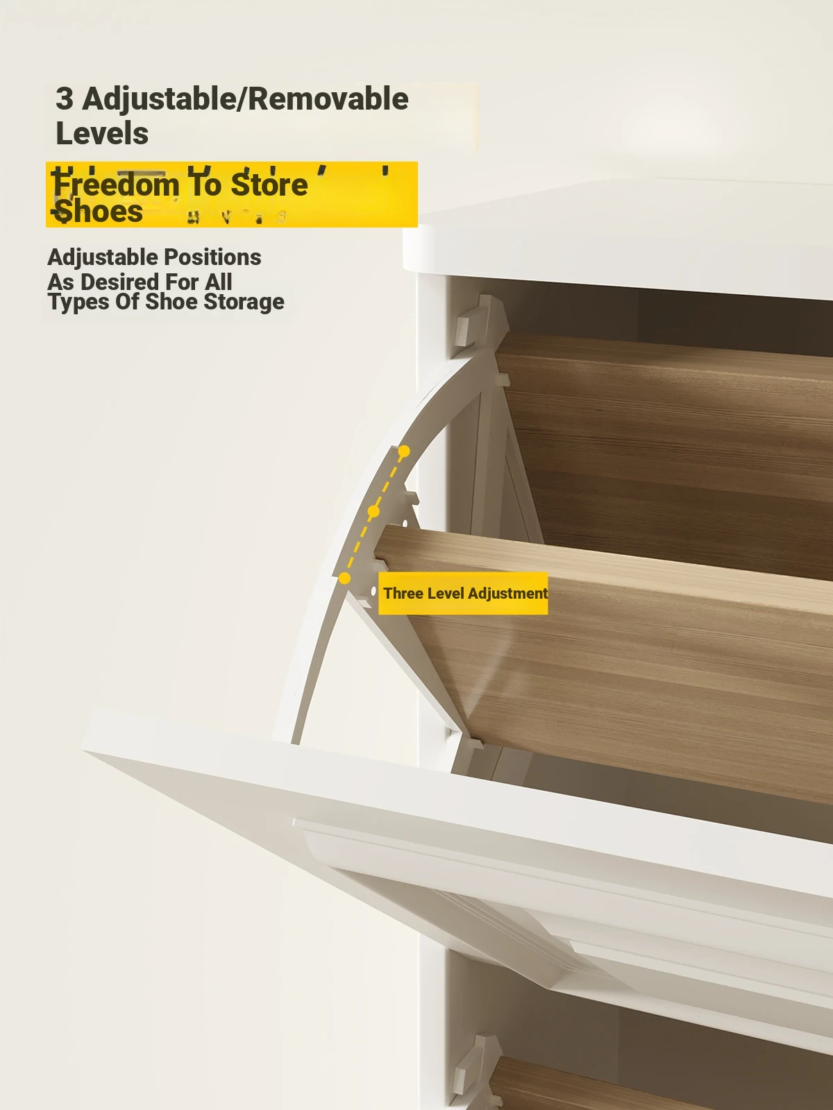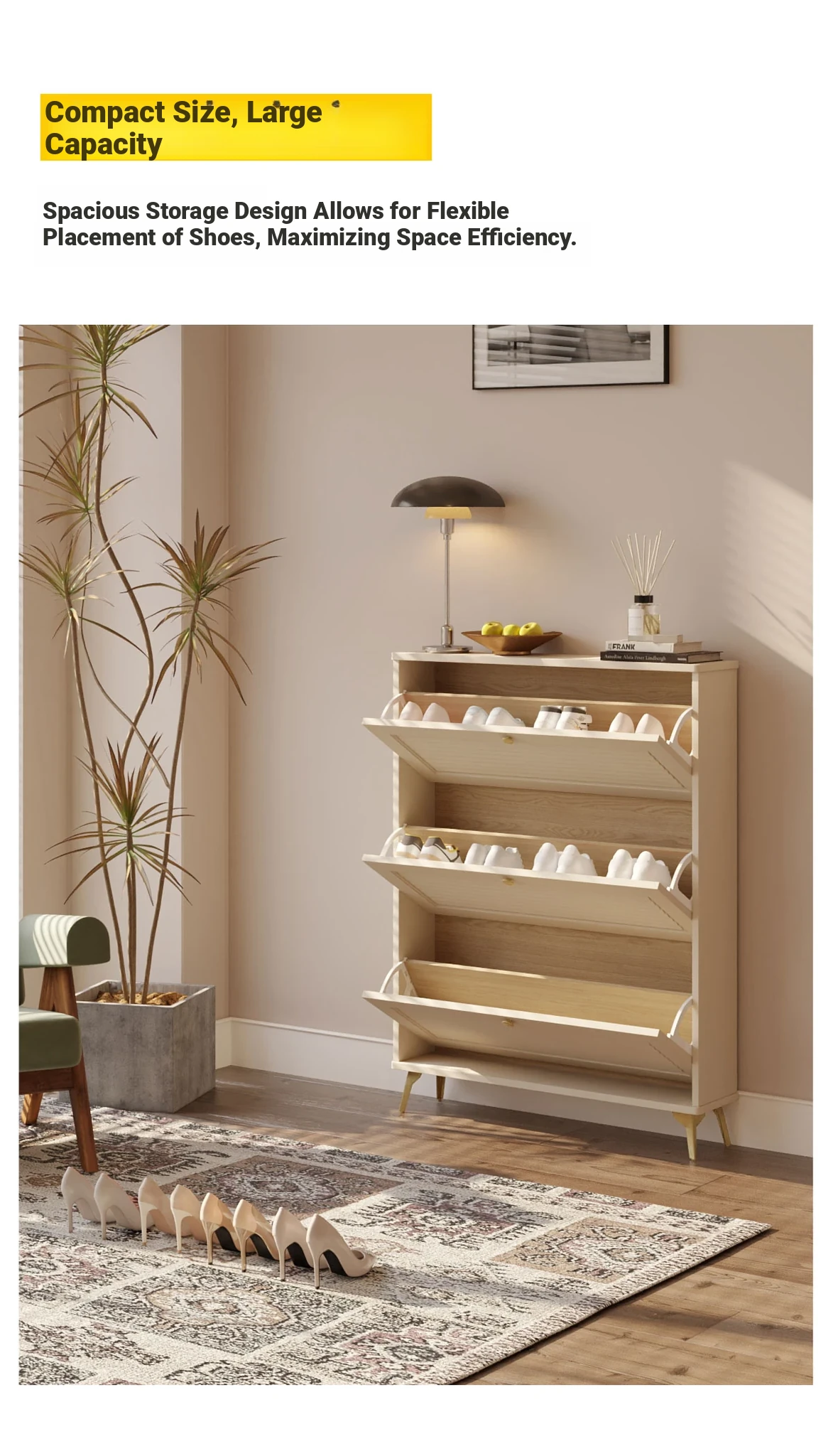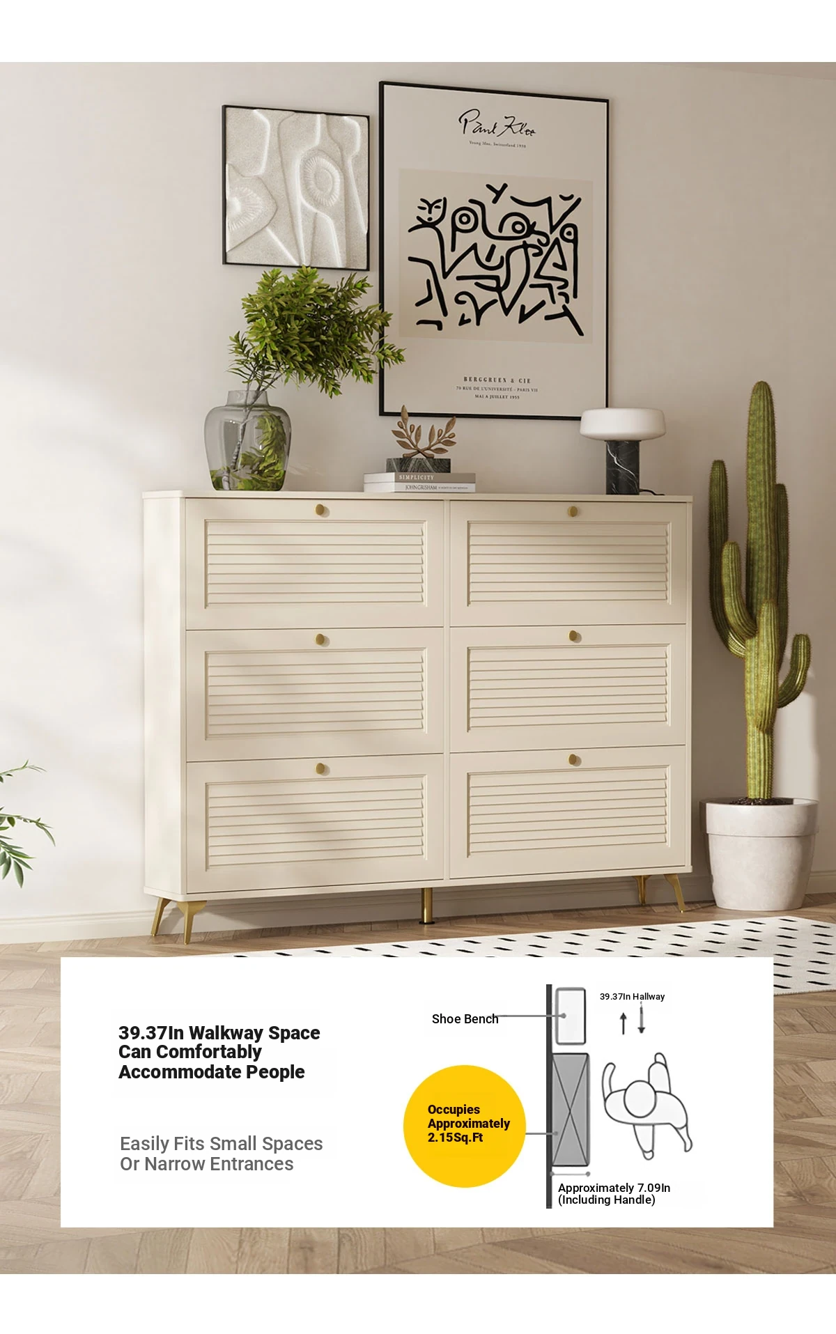 "2025 New Arrival: Slim Wooden Shoe Cabinet in Cream Finish – Perfect for Small Spaces & Entryways, Wall-Mounted Design for Easy Access"