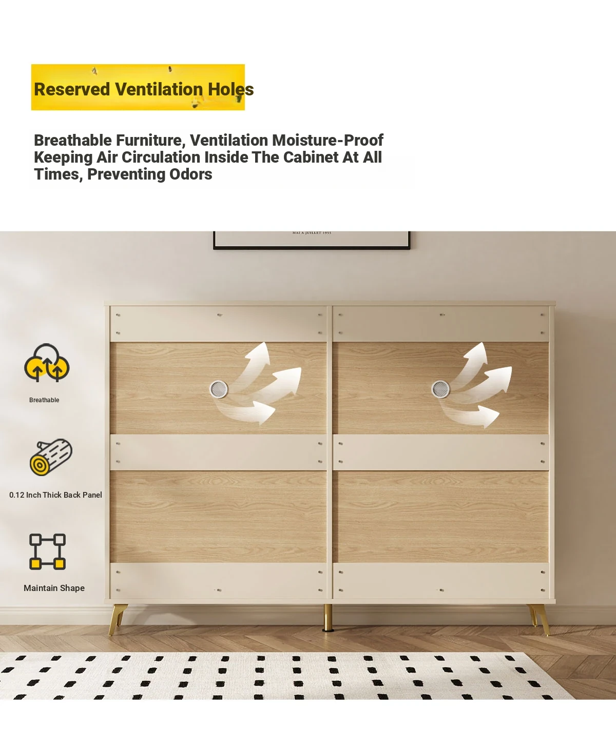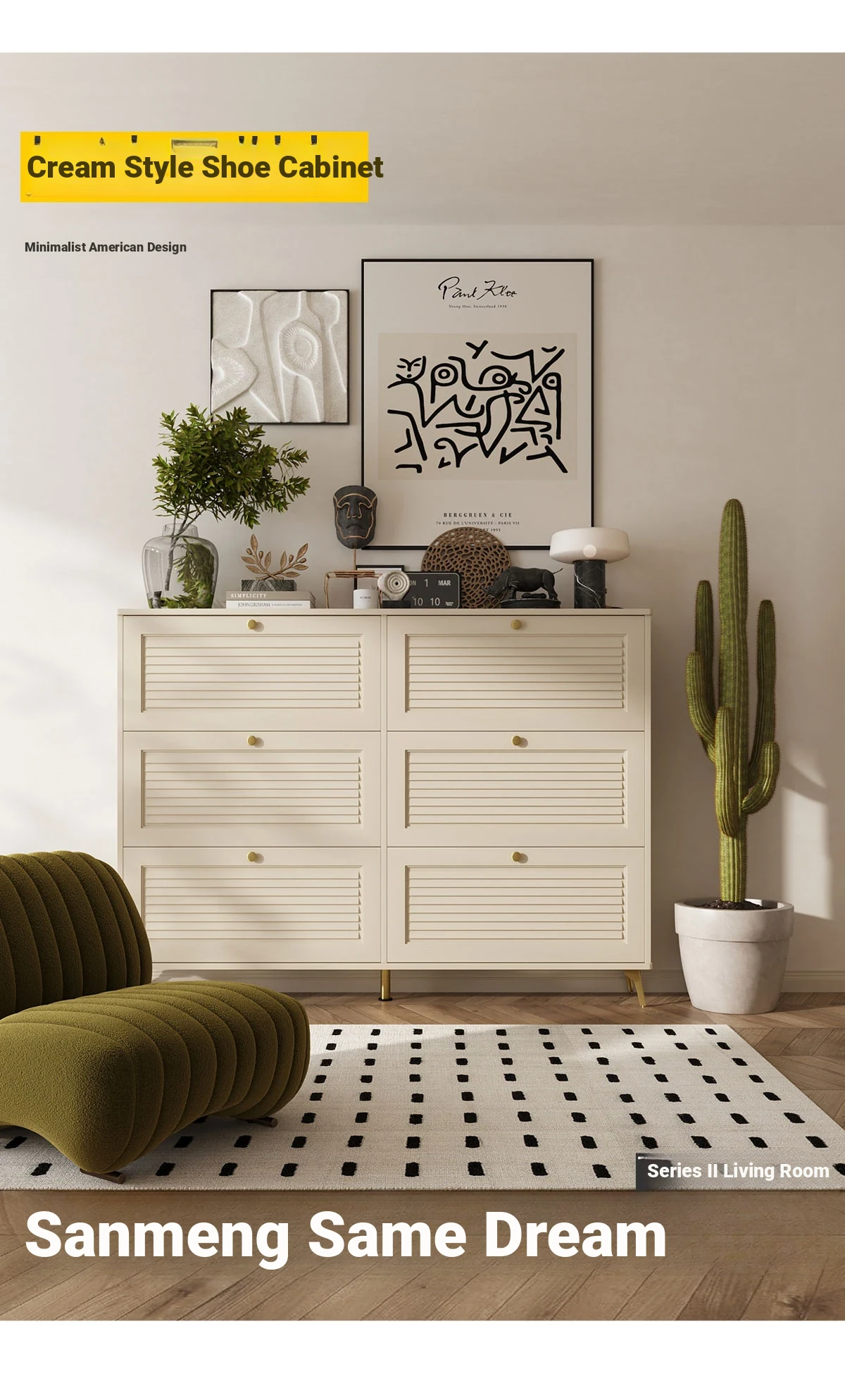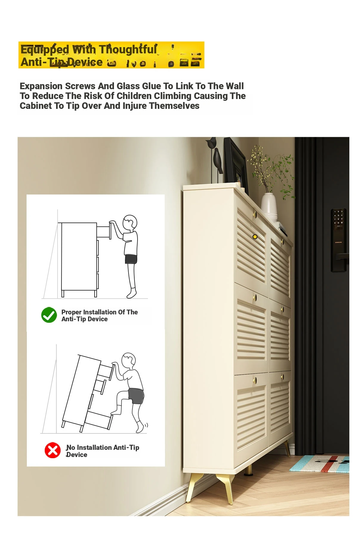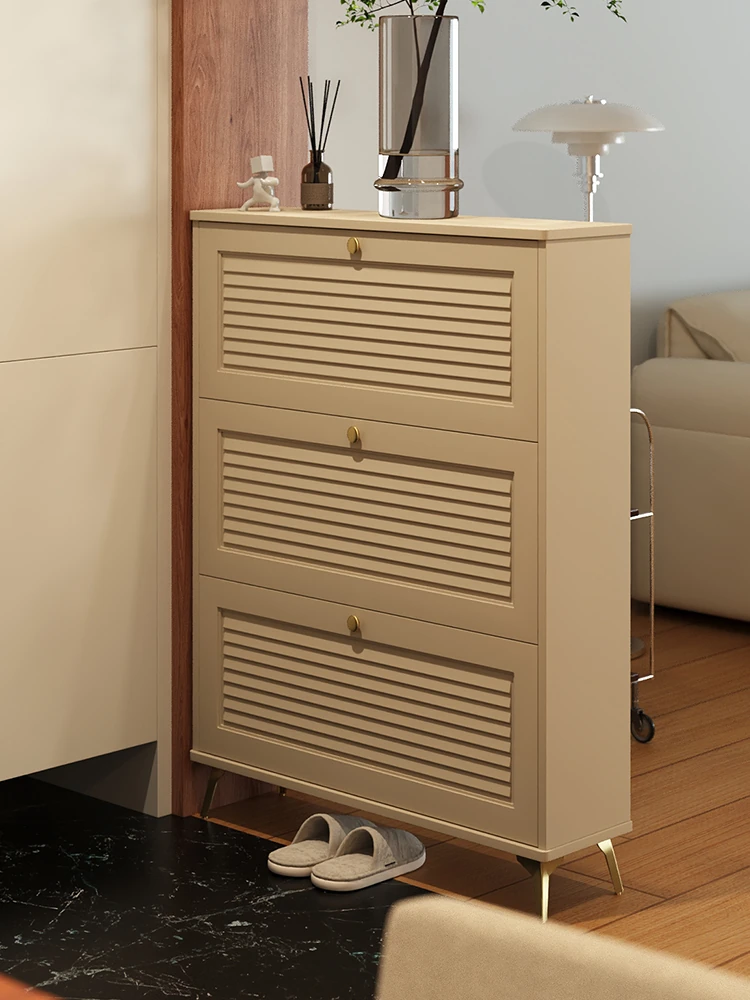 "2025 New Arrival: Slim Wooden Shoe Cabinet in Cream Finish – Perfect for Small Spaces & Entryways, Wall-Mounted Design for Easy Access"