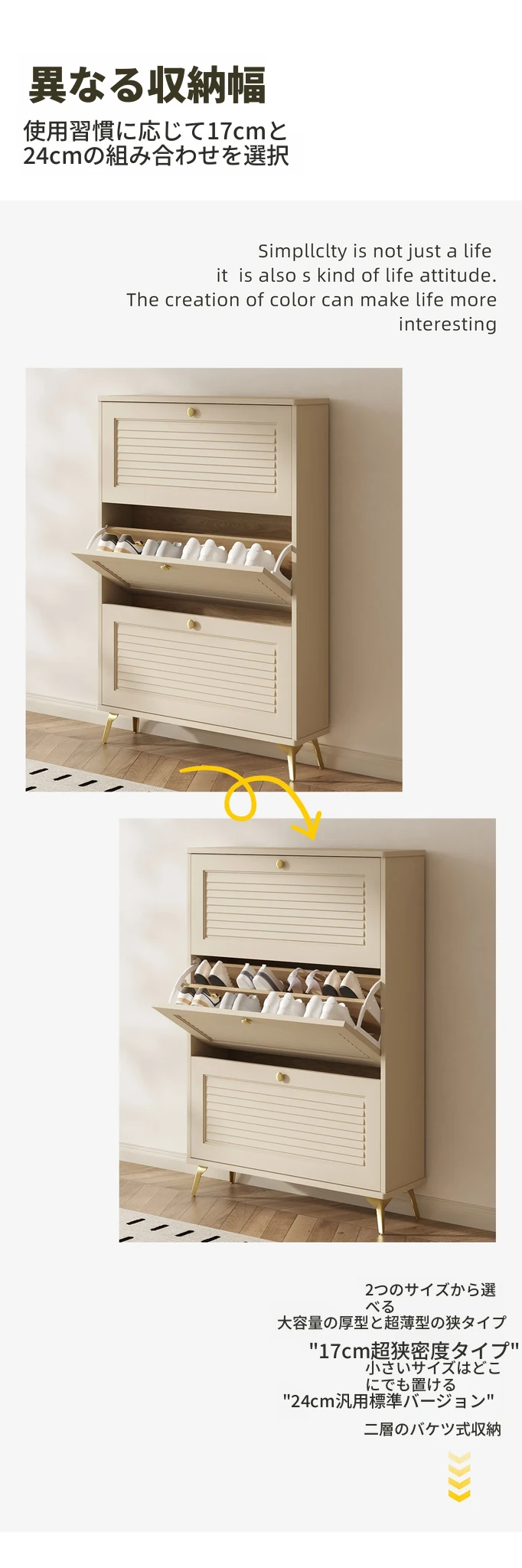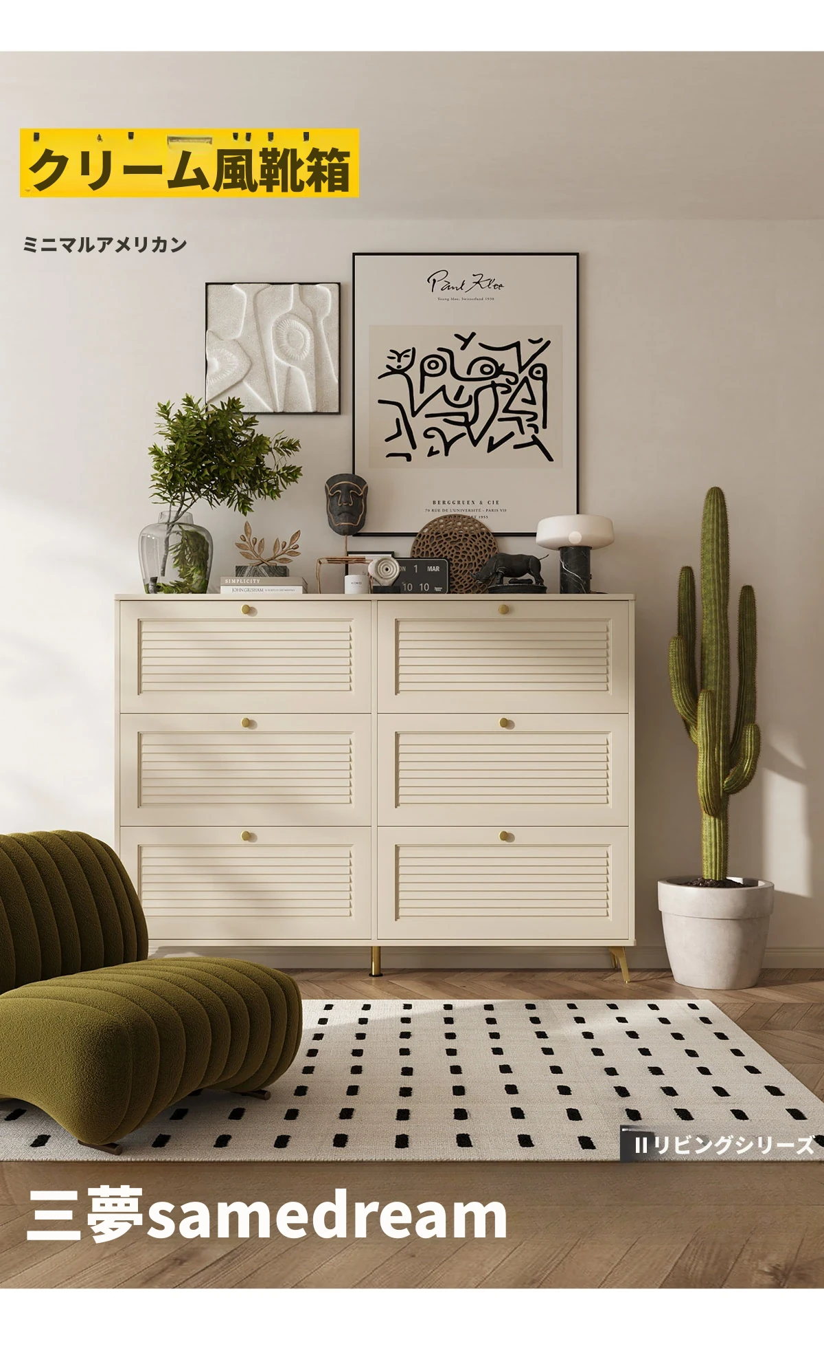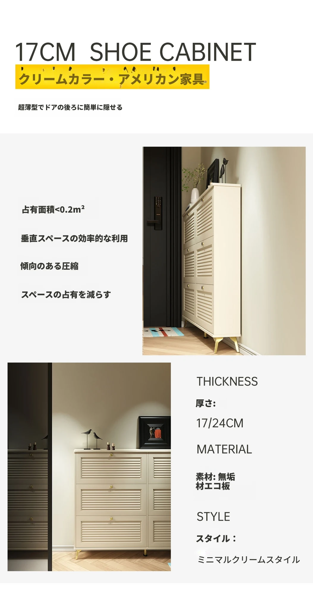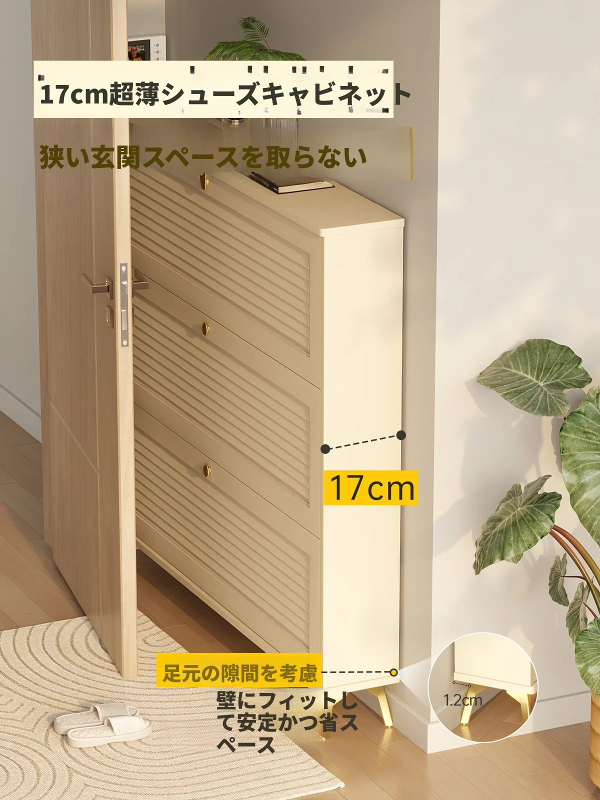 スリムデザインの木製小靴収納キャビネット|クリーミーな風合いで玄関をおしゃれに演出|狭小スペースにもぴったり!2025年最新トレンド、爆発的人気商品登場!