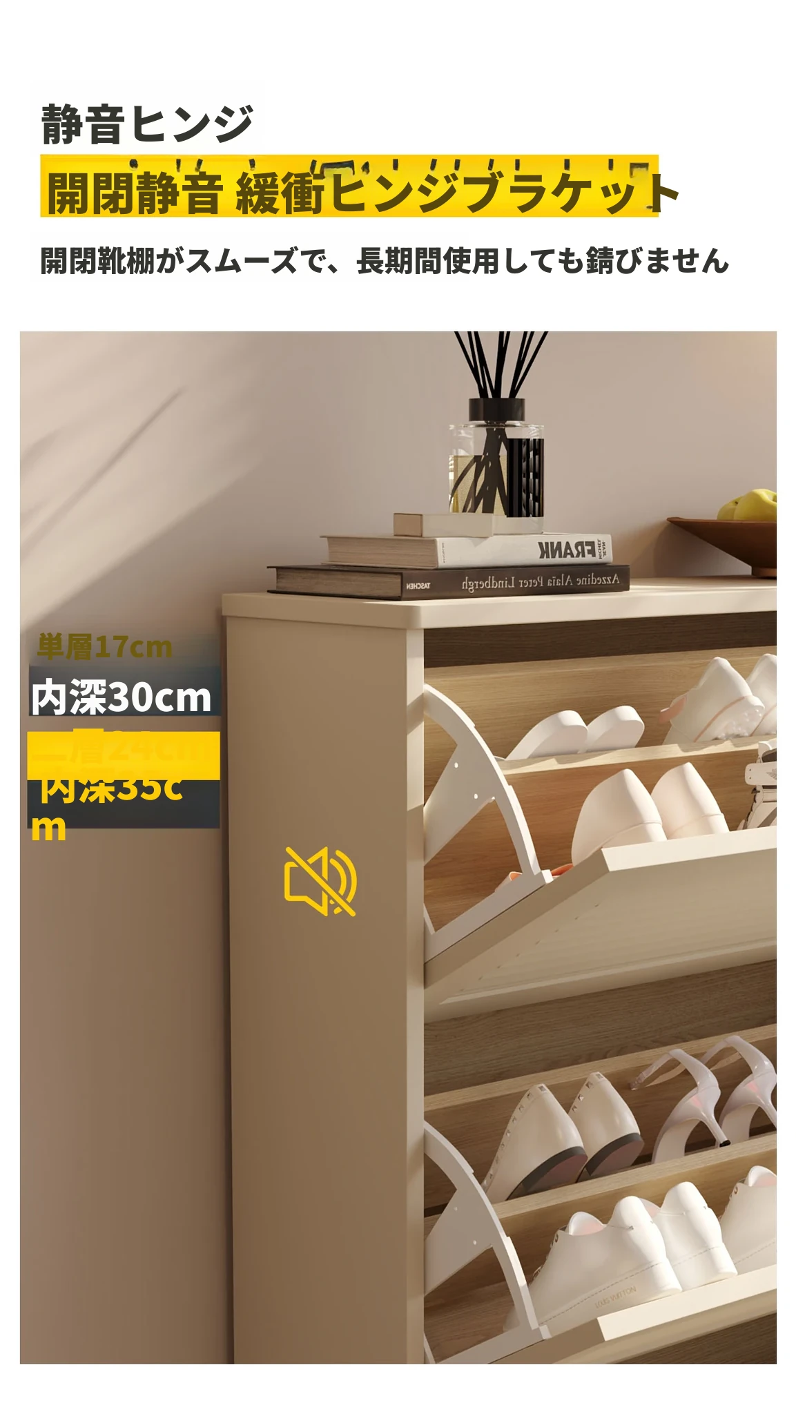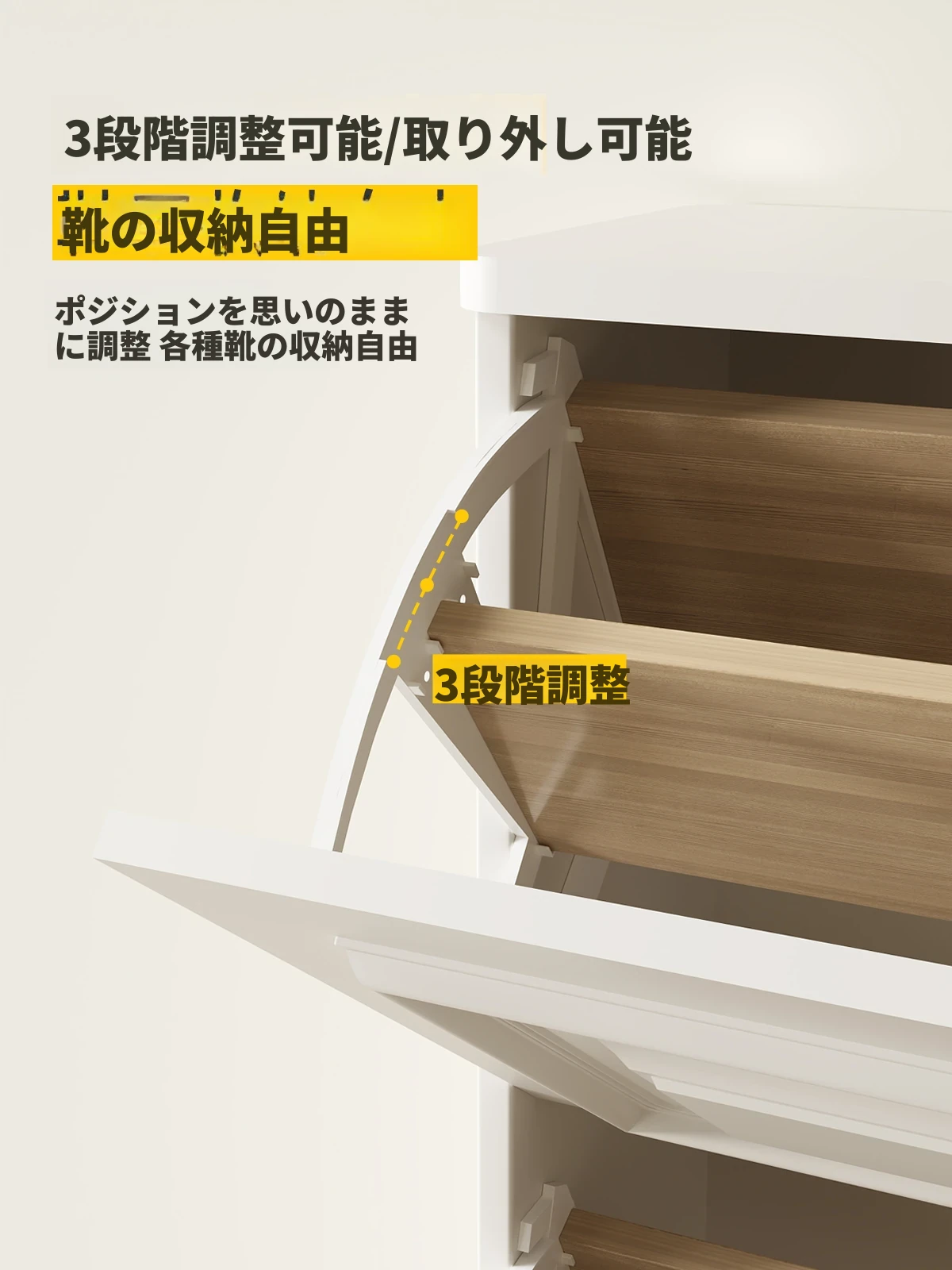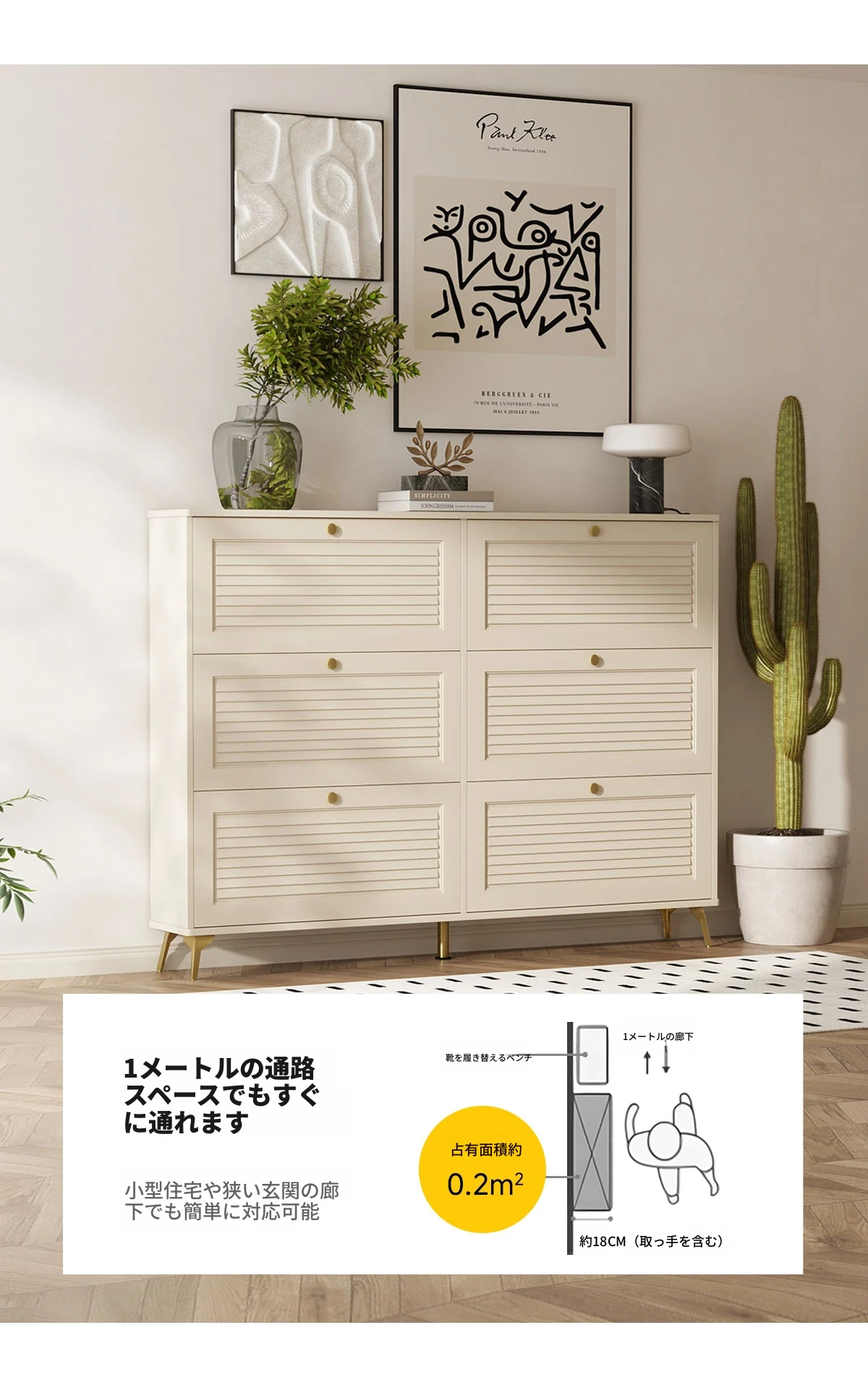 スリムデザインの木製小靴収納キャビネット|クリーミーな風合いで玄関をおしゃれに演出|狭小スペースにもぴったり!2025年最新トレンド、爆発的人気商品登場!