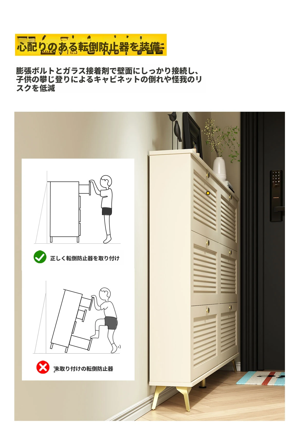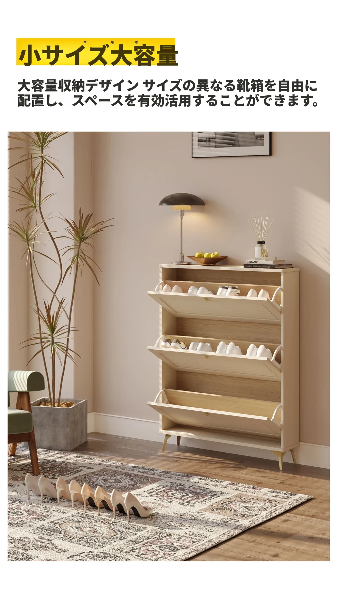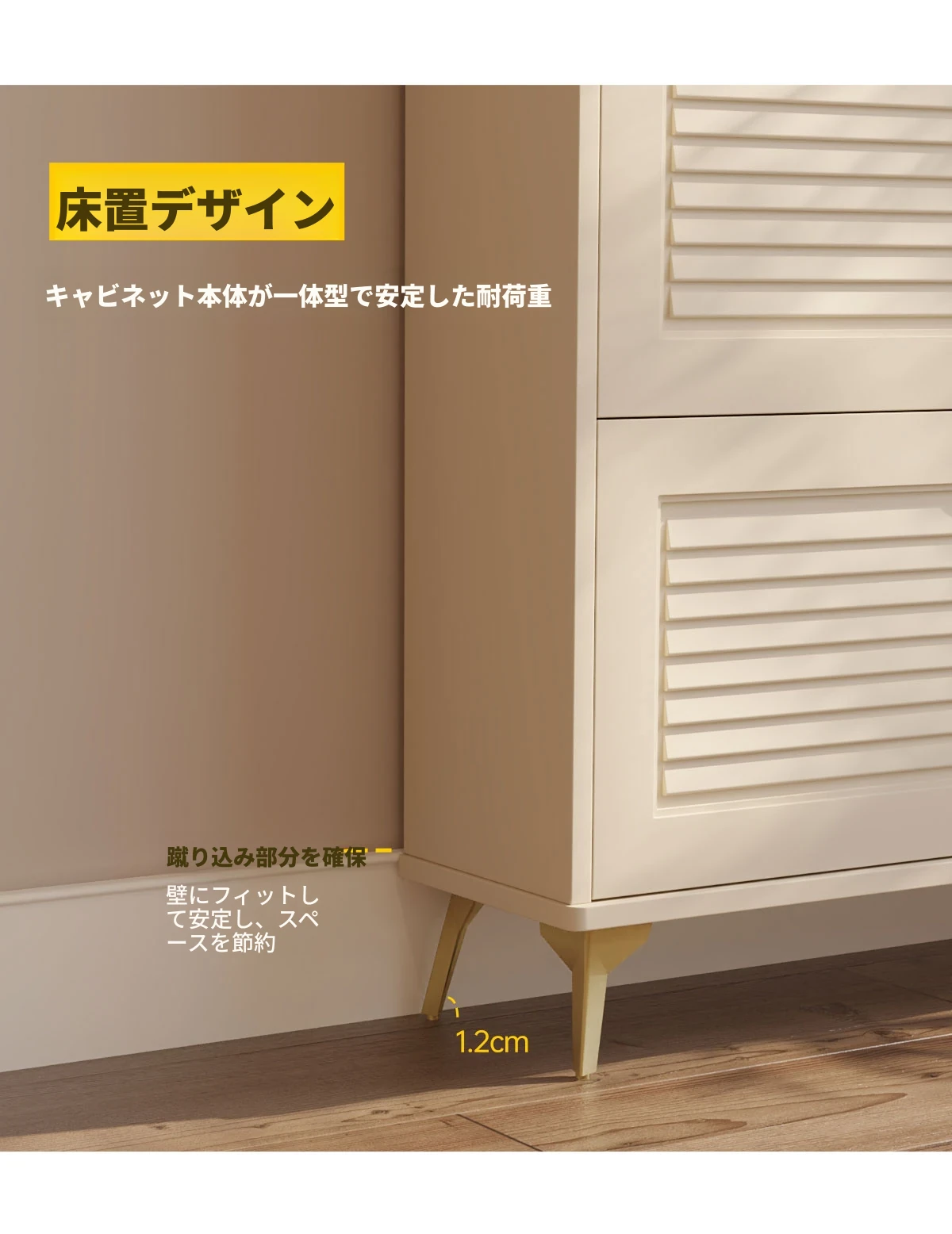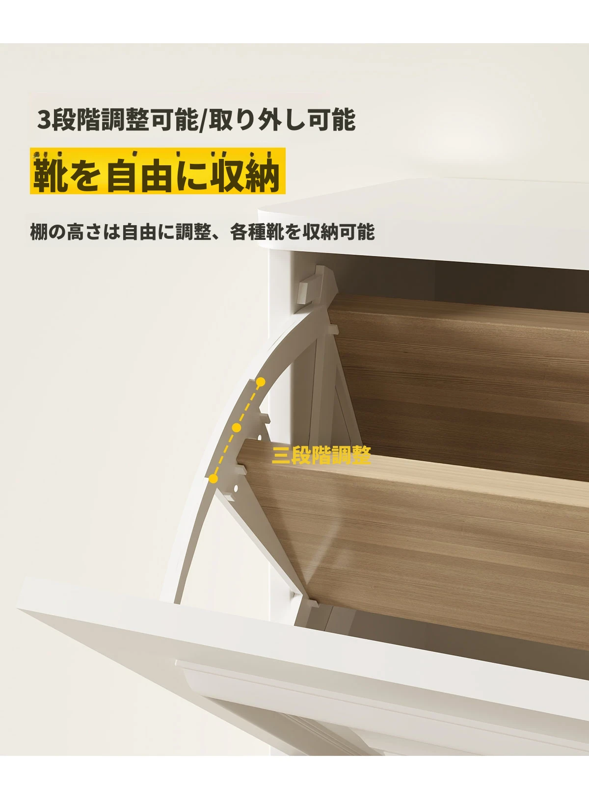 スリムデザインの木製小靴収納キャビネット|クリーミーな風合いで玄関をおしゃれに演出|狭小スペースにもぴったり!2025年最新トレンド、爆発的人気商品登場!