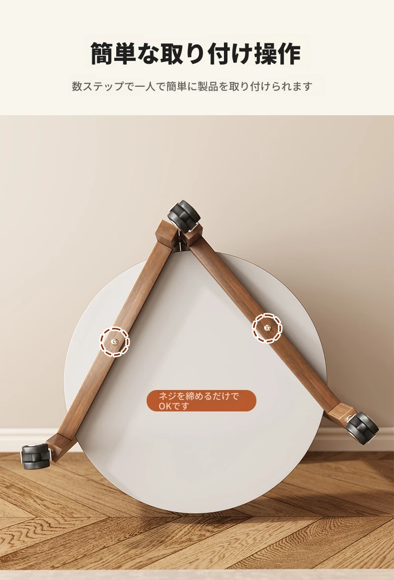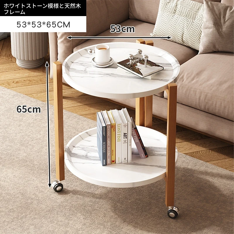 ナチュラルウッド色フレーム + ホワイトストーン模様天板 53*53*65